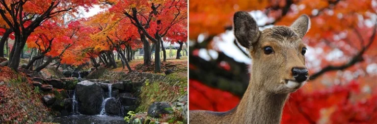 Nara Park is a hot favourite tourist destination throughout the year, but it is exceptionally stunning in the autumn. With all the trees starting to change hues, the park is transformed into a colourful playground for both visitors and the adorable Nara deer that reside there. Seeing these treasured animals frolic in their natural environment will enhance the beauty of the park and your autumn experience. You can even get close to and feed the deer, but be sure to treat them with care and respect.