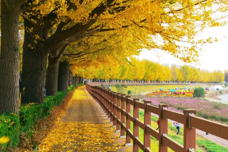 Japan is not the only country with amazing roadside tree views – In Korea, the Asan Gingko Tree Road boasts of an array of sturdy trees that turn a captivating shade of golden-yellow in the autumn. As the season progresses, the walkway will be completely blanketed by these crisp leaves; perfect for you to jump around in!
