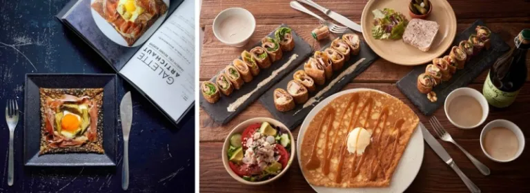 As much as sweet sugary crêpes are the go-to choice, these papery pancakes can also transform into a full meal when you dig into those garnished with eggs, bacon, and mushrooms glazed with special salted butter! Finish off the meal with some sickly sweet crêpes drizzled with syrup and topped off with ice cream scoops.