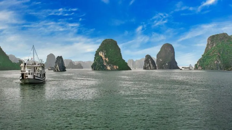 Quang Ninh is home to the UNESCO World Heritage Site of Ha Long Bay, renowned for its stunning seascape. The bay features thousands of limestone islets rising dramatically from the sea, offering a truly breathtaking panoramic view.