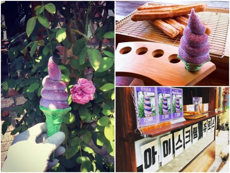 After milling around the streets of Ikseondong, you’re bound to run into a shop with tantalising pictures of ice cream. Not just any ice cream, but a lavender-coloured soft serve!