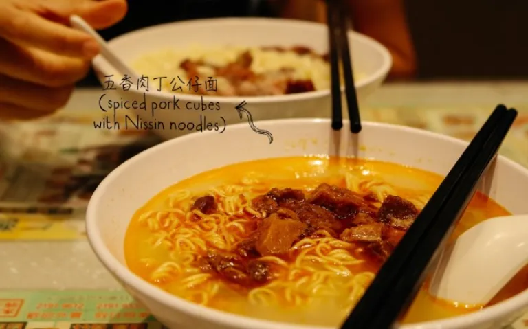We ordered from the newspaper clippings posted on the wall, choosing the chicken chop noodles (HK$38) and the pork chop bun (HK$36). Unfortunately, the chicken chop was a letdown — dry and tough, making it hard to enjoy. However, the instant noodles were delicious as always! The star of the meal was undoubtedly the pork chop bun; it was juicy and tender, perfectly paired with the bun.