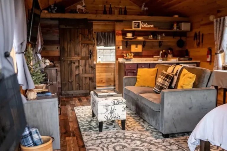 Journey to this tiny home in the Poconos for a cabin on Airbnb that lets you enjoy the best of both worlds: camping in a beautiful off-grid location while enjoying the comforts of home. Although the remote cabin runs completely on solar power, you won’t have to live without creature comforts: There’s WiFi and even a smart TV with Netflix, Hulu, and Amazon Prime.