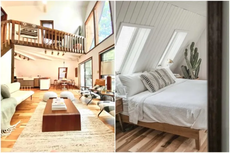 Visiting this mid-century cabin in the woods feels a little bit like waking up in a fairy-tale book — it certainly looks straight out of a Hans Christian Andersen story. But the pretty A-frame cottage is reality alright; the Poconos Airbnb even comes with a full chef’s kitchen, three cosy bedrooms, and the bathtub of our dreams giving us the perfect spot to watch the leaves turn in autumn.