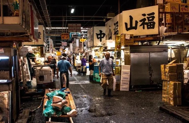 The inner seafood market of Tsukiji Fish Market in its former location in Tokyo, Japan. | Image credit: Aussie Assault