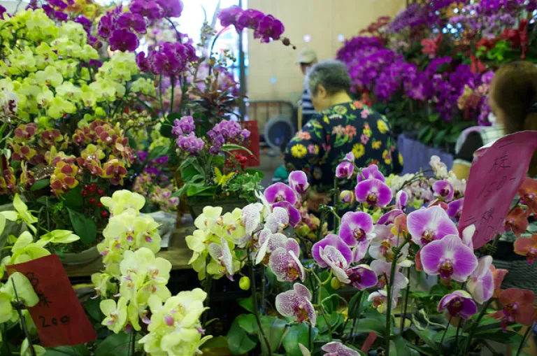 Admire blooming orchids at Jianguo Weekend Flower Market