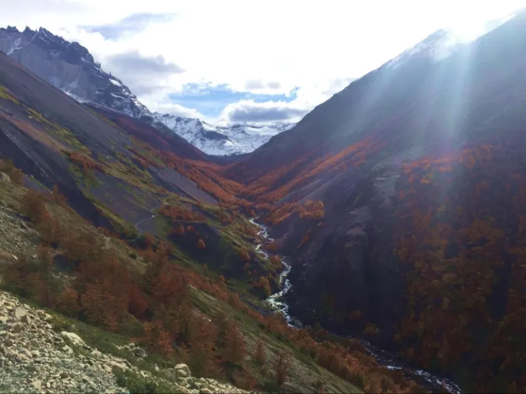 Venture through picture-perfect tranquil valleys leading to Refugio Chileno.