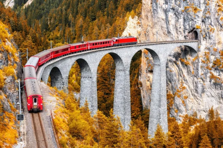 The best way to discover the beauty of autumn and winter in Switzerland is by embarking on an enchanting rail journey through the country. The Grand Train Tour of Switzerland (GTToS) is one of the most spectacular ways to explore the country. This curated route connects the most scenic train journeys into one unforgettable experience, weaving through alpine peaks, glacial valleys, crystal-clear lakes, and storybook towns, all from the comfort of a train.