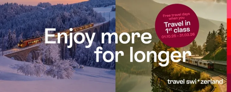 While the Alpine wilderness and epic train journeys are reason enough to visit Switzerland, those travelling with the Swiss Travel Pass 1st Class have even more to look forward to, especially with the two bonus travel days included in the pass. It’s the perfect opportunity to explore beyond the main highlights and immerse yourself in the country’s autumnal colours or winter charm.