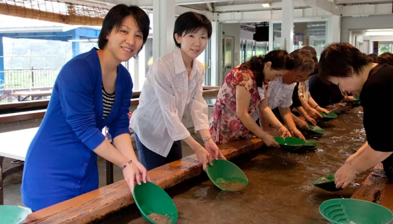 If you’d like to pan some gold for yourself, head to Sado Nishimikawa Gold Park, where visitors can roll up their sleeves and focus on sieving for tiny gold nuggets. How cool is that?