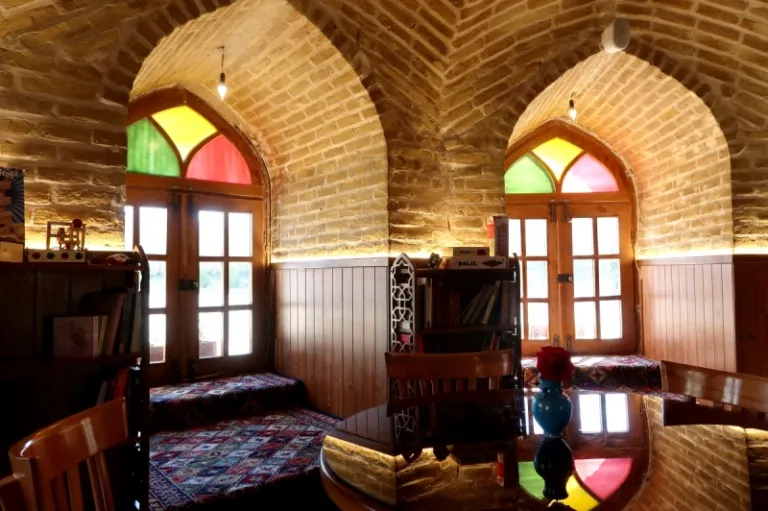 North of the Sheikh Lotfollah Mosque is a small courtyard housing the Traditional Banquet Hall on the second floor. It doesn’t quite matter what you put on the plate, whether it is tahchin (baked saffron rice cake stuffed with chicken fillets) or other traditional Iranian foods; the beautiful interior, with colourful stained glass windows and dazzling mirror-adorned ceilings, will make it worth the visit.
