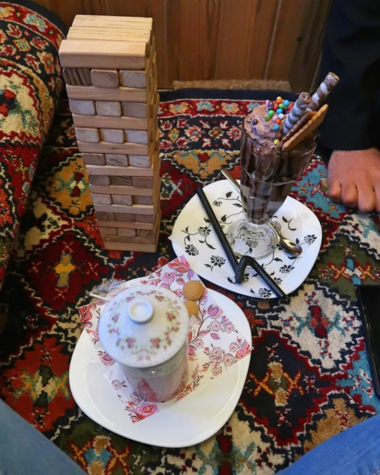 Near Khaju Bridge, Cafe Me is a cosy enclave washed in wooden hues. Aside from the usual suspects like tea and cakes, this cafe also has a selection of detox juices, mocktails, ice cream cakes and frappuccinos. The items on the menu are priced slightly higher than regular cafes in Isfahan, but if the Nutella cheesecake sets the standard for everything they serve, I’d say it’s worth it.