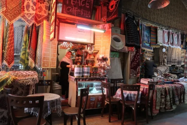 A lovely find along Sepah Street, at the entrance of Naqsh-e Jahan Square, the recently-opened Persian Cafe serves tea, coffee, sherbet and cakes. It is located on the right side as you enter the small Mesgarha Bazaar through its arched half-dome ceiling.