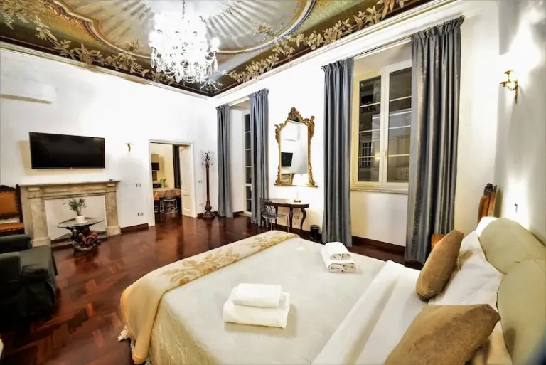 Walking in Rome can tire out anyone. That’s why we recommend this beautifully appointed suite near Roma Termini station, where you can ride the subway or the bus to navigate the city with ease. After a day of sightseeing, you can enjoy hotel-like amenities and sleep under a ceiling covered in frescoes from this Airbnb in Rome. Ready to live in the lap of luxury?