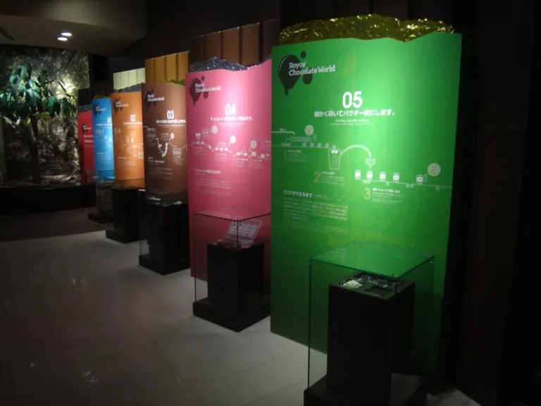 There was an area that provides facts and images on podiums that summarise Royce’s history and culture. There were also different figures made of different materials like stone or clay that represented the discovery and evolution of cacao beans in Japan.