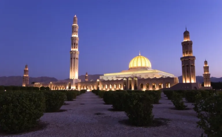 Grand Mosque in Muscat at sunset | Image credit: rastmo