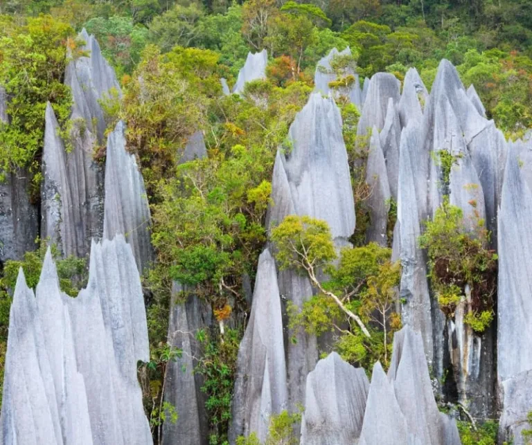 Additionally, don’t miss Deer Cave, or Gua Rusa, the second-largest cave passage in the world, where you can witness a spectacular bat exodus. Another breathtaking sight in Mulu National Park is undoubtedly the Pinnacles of Mulu. These are a group of striking, sharp limestone spires that rise dramatically from the jungle floor and will take your breath away. Even better? Mulu National Park offers a three-day, two-night tour that includes a guide, boat rides, and camping fees, allowing you to fully explore the Pinnacles!