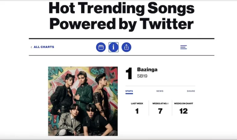 This week, SB19 has all the more reason to celebrate as they have earned the title of “record-breaking,” with the longest-running no. 1 spot on the Billboard HTS chart, a weekly recap of the most discussed songs on Twitter globally. It’s all thanks to the efforts of A’tin, who have consistently talked about Bazinga on Twitter, until it broke its six-week tie with Butter.