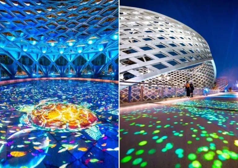As night falls, a dazzling outdoor immersive experience known as the ImagiNite takes place. The only one of its kind in Southeast Asia, ImagiNite brings a nature-inspired soundscape to life using interactive digital light art and augmented reality.