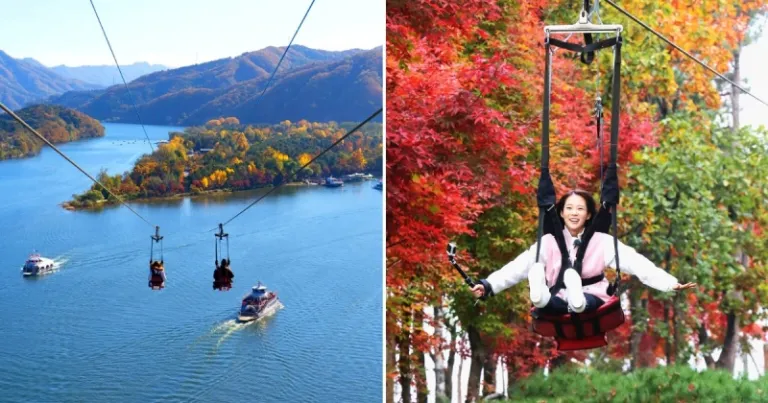 Going to Nami Island is hands down one of the best day trips from Seoul in autumn. And rocketing on a zipline is a must-try when visiting this quaint island, located 25km from Seoul Station. You can book a private day tour that includes the option of riding the Nami Island Zipline for the best experience. This thrilling trip offers an exciting ride along a 940-metre-long zipline surrounded by magnificent fall foliage from the wharf to the island with a speed of 56km/hr. Talk about a rare opportunity to enjoy the beauty of autumn in South Korea!