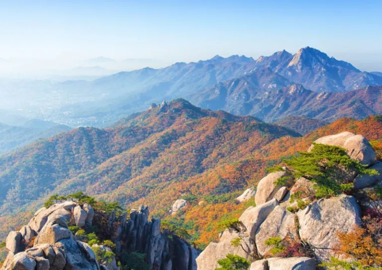Another captivating destination to add to your fall foliage hotspot list would be Bukhansan National Park. Bukhansan means “mountains north of the Han River,” and the three main peaks are the Baekundae, Insubong, and Mangnyeongdae.