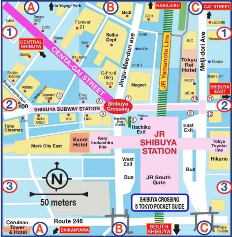 You can access and download the complete Shibuya Crossing map and other maps of neighbouring districts here.