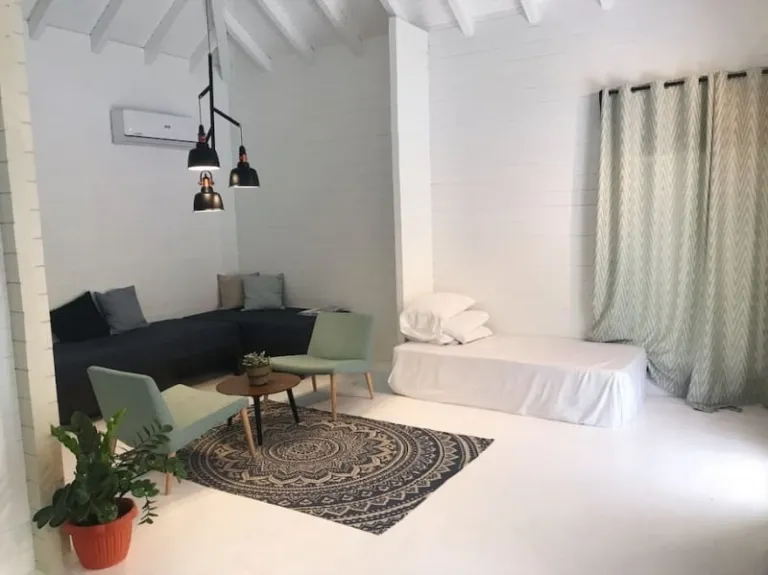 If you value your time indoors just as much as the time you plan to spend exploring the island, you’re sure to enjoy the room’s flat screen TV, which comes with installed movies and a bluetooth sound system. Guests may also access the resort’s amenities which include their pool, sundeck, rooftop, and bar. Learn more about this Airbnb here.