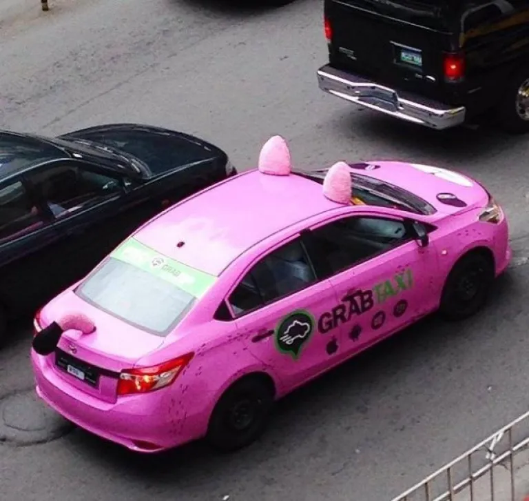 13. Who can resist riding on this pink taxi?