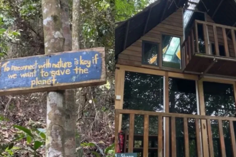 Rainforest Tree House offers a rare chance to stay in actual treehouses nestled amid jungle greenery, a meaningful escape from city noise just a short drive from Johor Bahru. There are several treehouses of different sizes, some modest and some three-storey, with the larger ones requiring climbing steps if you carry luggage. Stays typically include basic amenities such as bedding, power outlets, a toilet, and a shower.