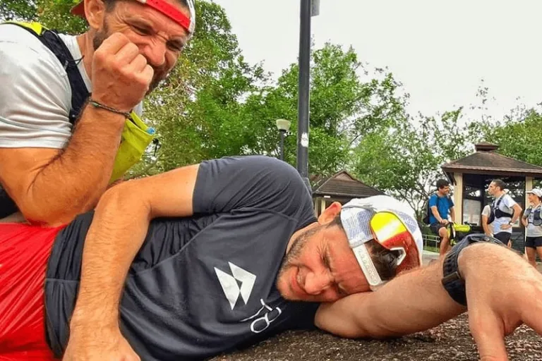 “The toughest part was that at around the halfway point I started to have a serious problem with my hip. I had to stop every few kilometers to get treatment from our support team, and in some cases from Jean, and then at around 120 kilometers I had a calf problem in the other leg, probably from compensating for the hip. I felt bad for Jean because I really slowed us down,” Daniel said.