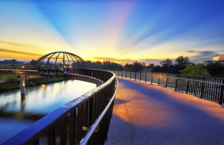 Punggol, arguably the beauty queen of all heartland estates in Singapore. Naturally, it makes one of the best sites to behold the charm of the sun’s nightly retreat. At the western end of Punggol Waterway Park is Jewel Bridge, which illuminates gloriously before the saturated sky as the sun sinks.