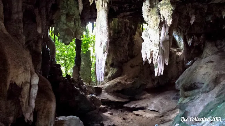 Tham Pee Hua Toe cave: stalactites hanging from the ceiling