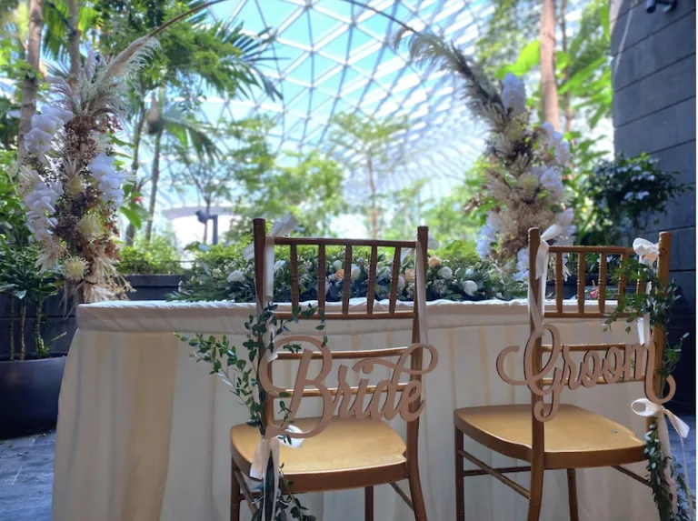 Want a more intimate venue? The Valley View Private Suite is perfect for a scenic small wedding and a charming tea reception. The suite is tucked away and enclosed in a private open balcony that overlooks the Shiseido Forest Valley. It even gives you a glimpse of Changi’s Rain Vortex. Perhaps you can say that the Valley View Private Suite gives you the best of both worlds!