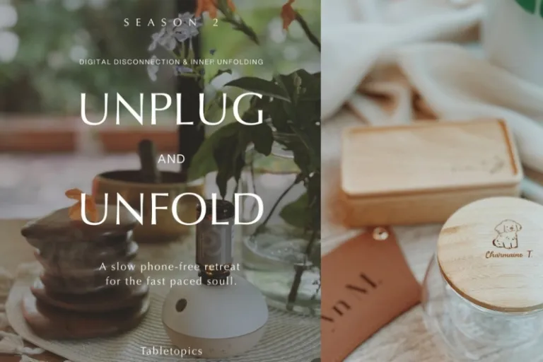 Unplug and Unfold is a real phone-free retreat run by Tabletopics. The organisers clearly state that participants are asked to keep their phones out of sight throughout the session. This policy is part of the experience and is genuinely enforced, creating an environment that prioritises presence, calm, and meaningful interaction.