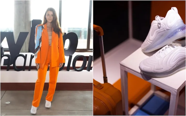 The new stewardess uniform is a loose-fitting tangerine two-piece suit. SkyUp stewardesses also have the option to wear a light trench coat made of Italian leather and a silk scarf over the shoulder. Previously, the scarf was tied around their necks. Even better is that the airlines’ choice of sneakers for their stewardesses is the ergonomic NikeAir!