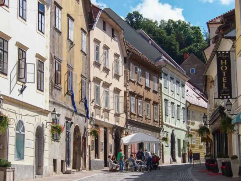 17. People enjoying the car-free streets in historic Ljubljana