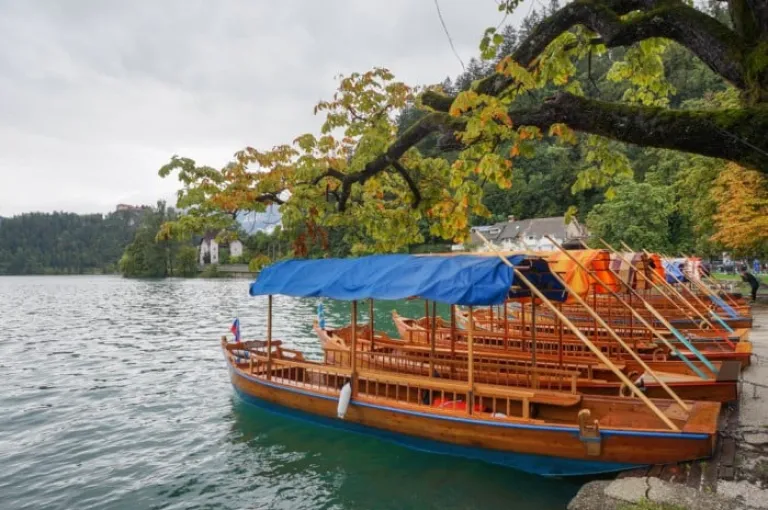 18. Row of boats on Lake Bled