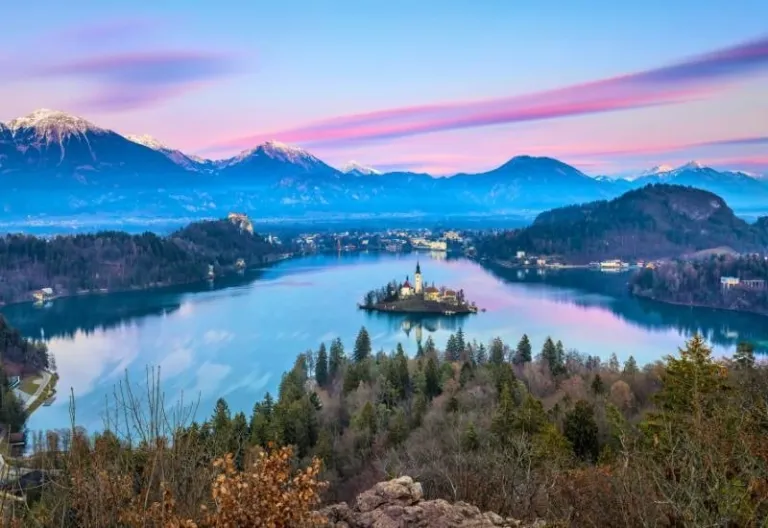 Nestled amidst the Julian Alps of Northwestern Slovenia, Bled is a small town straight out of a fairytale book! Here, the most striking feature is an ethereal 17th-century church, perched on a tear-shaped island at the centre of Lake Bled, a glacial lake with crystal-clear waters. The town itself, however, showcases a charming mix of traditional Slovenian architecture and modern dining and shopping spots. For your outdoor adventure in Bled, the nearby Triglav National Park offers unmatched mountain views!