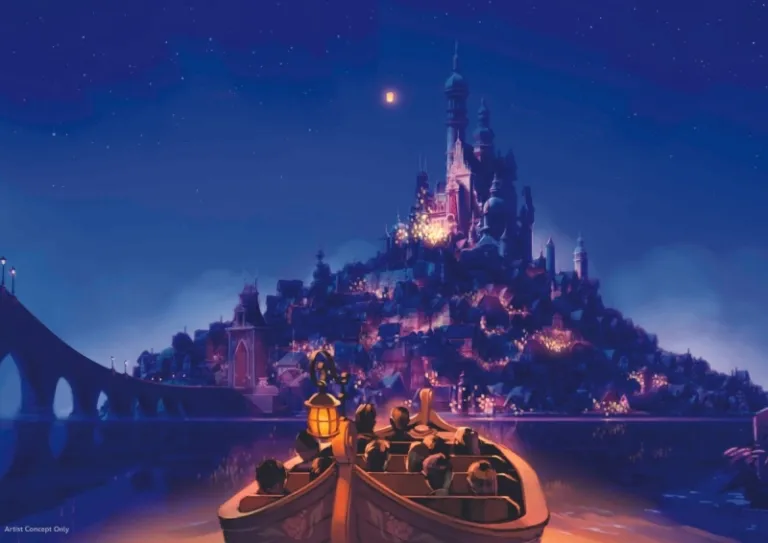 In this water ride, guests embark on a romantic gondola tour, following Rapunzel on her adventurous journey to see her beloved floating lights at the Lantern Festival in Tangled. The attraction features iconic song titles from Tangled, such as “When Will My Life Begin” and “I See The Light”. This ride takes about five minutes.