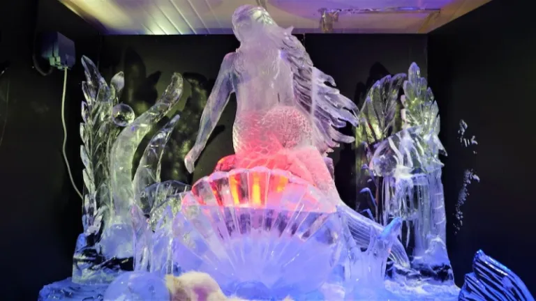 Ever wondered what a crossover between Disney’s Little Mermaid and Frozen would look like? Throne of the Sea will give you a pretty good idea. This beautiful installation features the frozen sculpture of a mermaid sitting on a giant shell!