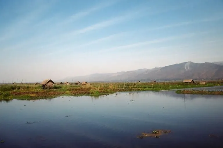 Discover a serene world on this vast freshwater lake, where the Intha people live in stilt houses and unique leg-rowing fishermen navigate their traditional boats. Floating gardens and bustling markets add to the charm of this tranquil waterworld.