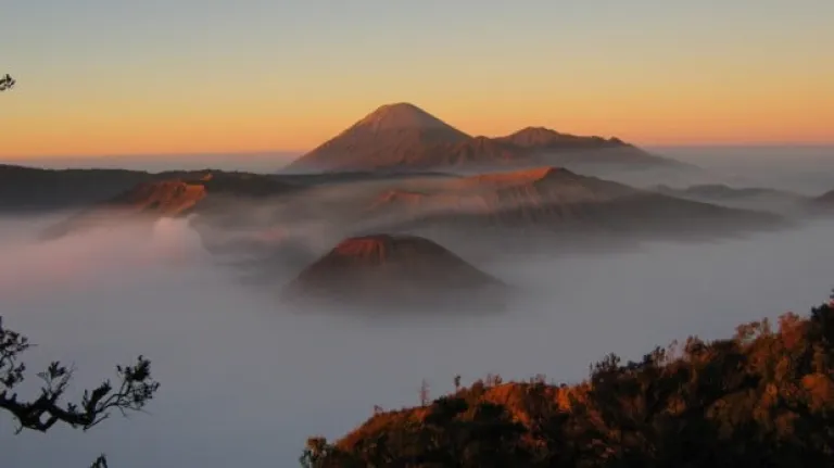 An active volcano set within a vast, surreal caldera of volcanic sand, visiting Mount Bromo at sunrise is an unforgettable experience. The ethereal landscape, often shrouded in mist, with the peak emitting plumes of smoke, feels truly otherworldly.