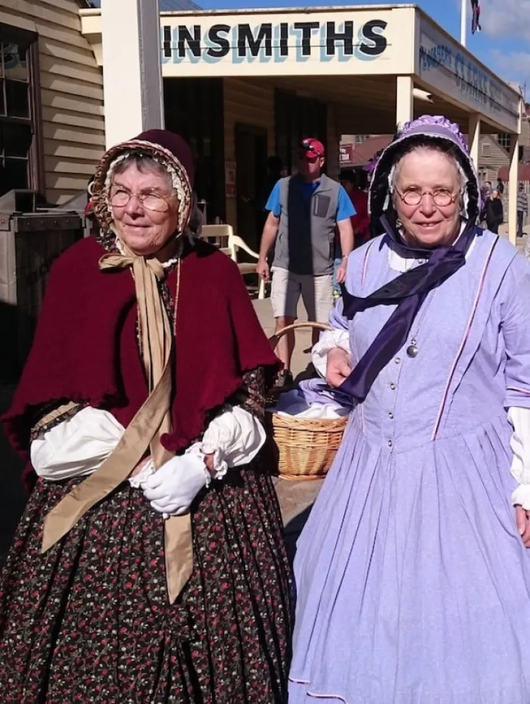 In fact, those working and volunteering at Sovereign Hill, both young and old, have all adopted the style and character of the 19th century. While the women walked around elegantly in long bell-shaped skirts, corsets, puffy sleeves and bonnets, the men pulled off their masculinity in tail and double-vested frock coats, straight trousers and top hats.