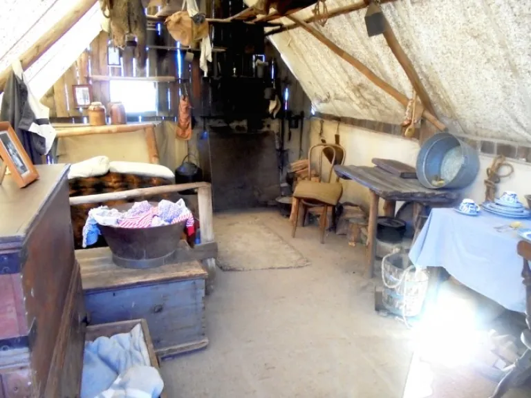 Outside lie gardens of freshly grown persimmon, among other vegetables, and a hot cooking fireplace made of logs and gravel in the middle of the camp. You can also find Chinese porcelain and calligraphy desks in Chinese miners’ tents, an indication that the Chinese had a piece of their homeland with them even when living on a foreign country.