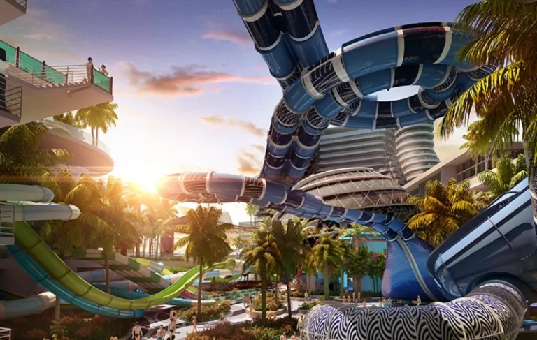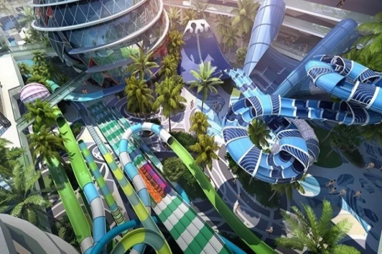 Spanning 46,000 square metres and costing RM200 million, it will feature a combination of indoor and outdoor waterpark experiences, including a whole kilometre of water slides as well as a river that flows between two floors, connecting more than 50 attractions. Visitors can look forward to 11 extreme slides, a children’s water play park, and a Sky Beach. Each night, a light show called “Cosmic Waters” will unfold in an amphitheatre together with trapeze stunts and a water circus.
