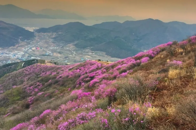 The Yeongchwisan Azalea Flower Festival celebrates the beauty of the mountain with traditional song and dance. The festival also includes rituals for the mountain god, a photo contest, and a Miss Azalea beauty pageant.