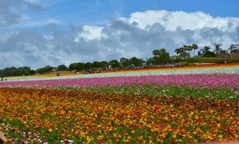 The flower fields of Carlsbad, California are a sight to behold in spring. Coated with the exuberant pinks, reds, and yellows of the ranunculus blossom, these fields are the perfect backdrop for your IG photos.