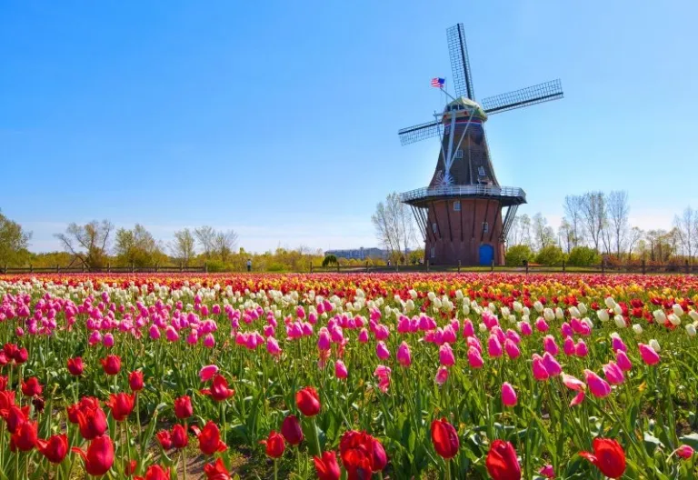 For a Dutch-inspired spring break in the US, make your way over to Holland, Michigan! Best loved for its vibrant tulip festivals, charming windmills, hip downtown shopping, and scenic cycling routes, this Midwestern gem offers a picturesque escape that feels worlds away. Nature lovers and curious adventurers will be delighted to know that the region also features a string of stunning beaches, nature preserves, and quaint historic towns, each more captivating than the last. We don’t know about you, but these definitely make for one of the most ideal spring vacations in the US!