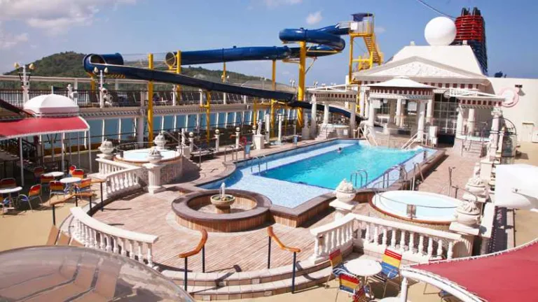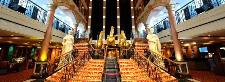 boasts 935 deluxe accommodations, up to six meals daily, onboard performances, multicultural restaurants, alfresco bar, salon and spa, gym, steam and sauna rooms, and many recreational facilities such as duty-free shops, a theatre, swimming pool, mini golf course and many more!