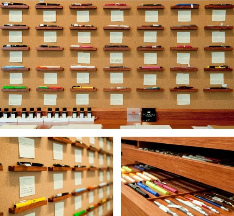 Located just a stone’s throw away from the Kuramae Station, this charming store can be found at the street level. Decorated with a woodsy feel, the store has a warm and welcoming vibe enhanced no doubt by the strategic and organised way of presenting pens, pencils and paper stock that encourage you to try them out.